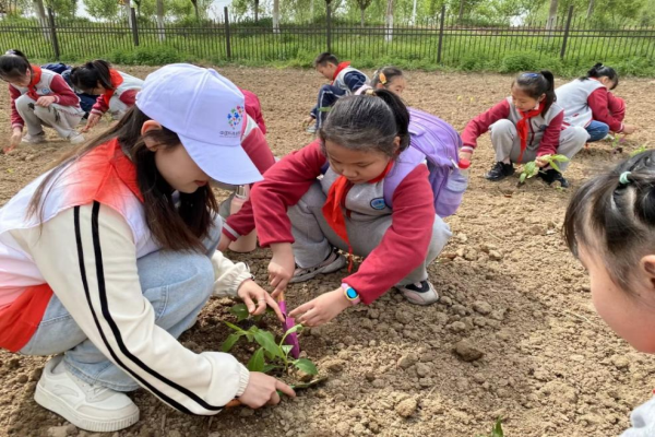 活动中,志愿者们先带领小员工们参观了菜趣园,共同欣赏了琳琅满目的蔬菜,学习了蔬菜的辨认方法、生活习性及种植技巧。然后,志愿者们给小员工们分发了菜苗及种植工具,指导小员工们有序地完成了蔬菜的种植,亲身体验劳动的魅力,领悟劳动的价值。