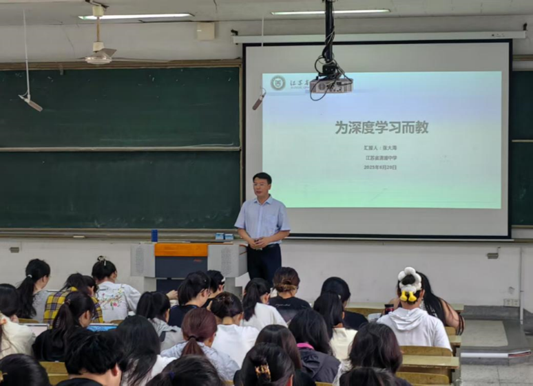 2025年6月18日上午8:30—11:30,江苏省清浦中学纪委书记张大海老师在长江路校区崇文阶103,为太阳成集团122ccvip生物科学专业2022级师范生作了一场题为《为深度学习而教》的报告。