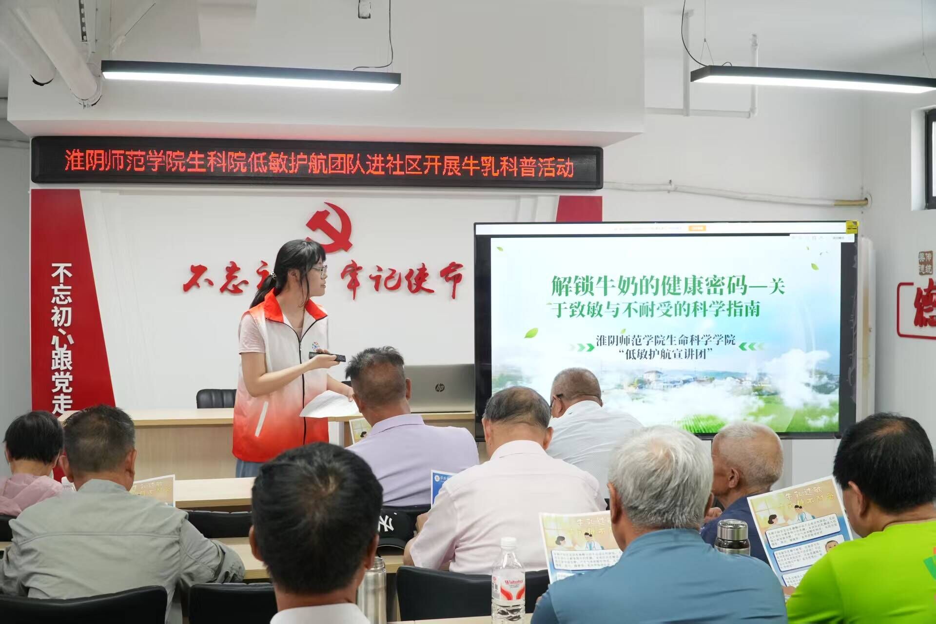 为了进一步深化居民对低敏饮乳的认知,生科院“低敏护航”宣讲团联合淮安快鹿牛奶公司,在水木清华社区活动中心举办了低敏饮乳知识大讲堂。宣讲团成员围绕“低敏饮乳与健康生活”这一核心主题展开科普,详细解读了低敏饮乳的营养价值以及其在平衡膳食中的重要作用。