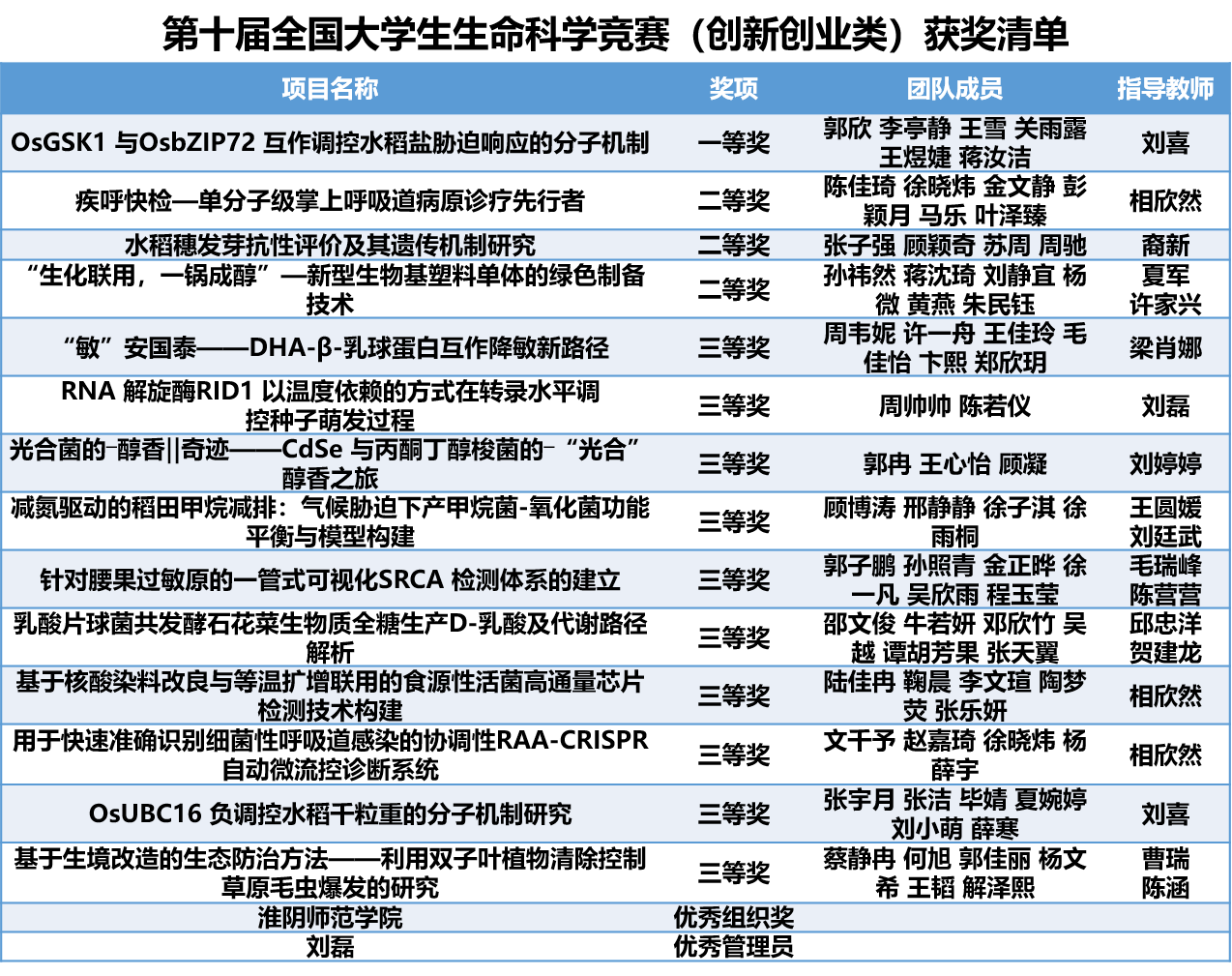 淮师斩获第十届全国老员工生命科学竞赛奖项16项