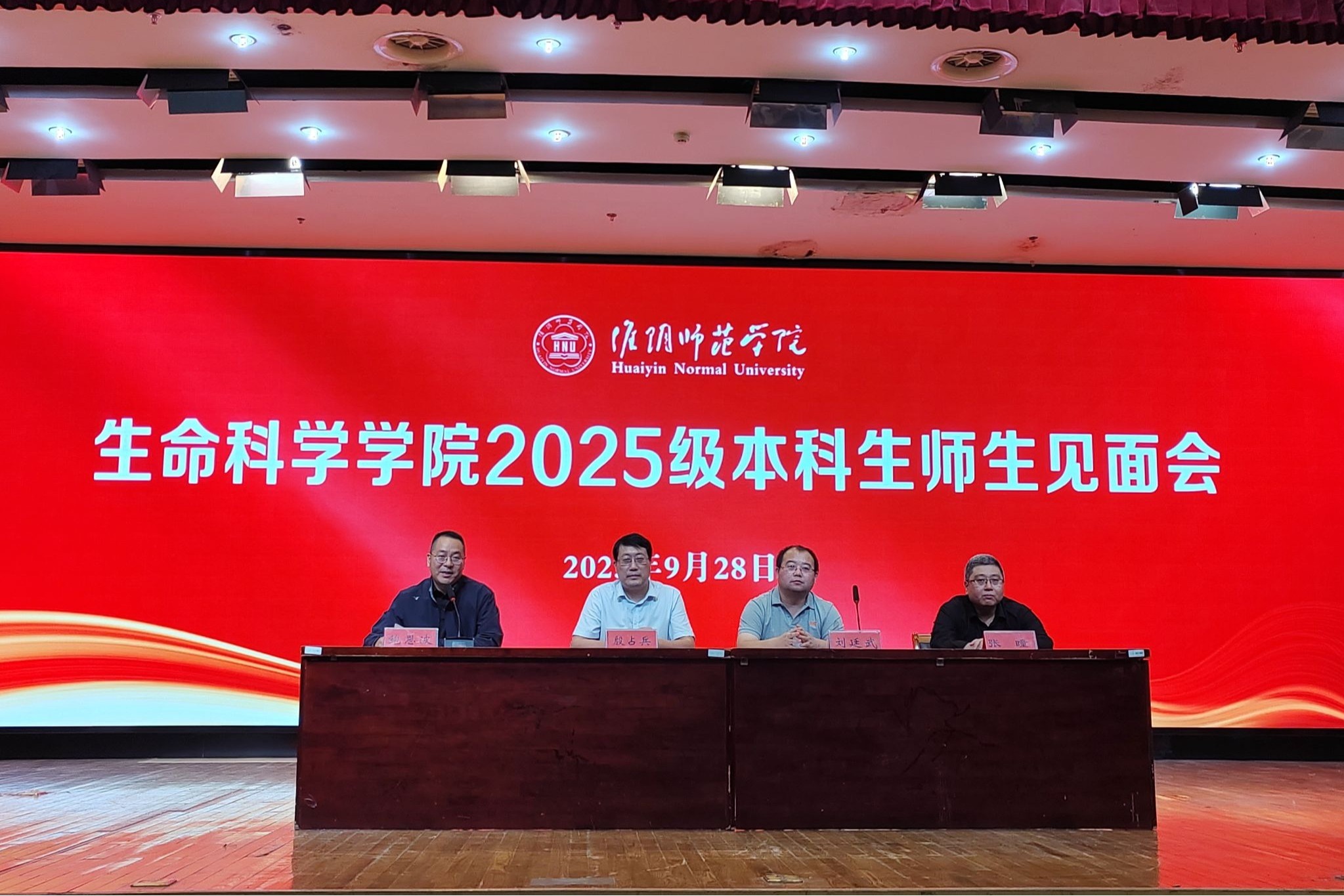 9月28日晚,生科院于图书馆报告厅举行2025级本科生师生见面会。生科公司党委书记殷占兵、经理刘廷武、党委副书记鲍恩波、副经理张曈、全体辅导员老师、2025级全体新生班主任及2025级全体新生参加会议,会议由鲍恩波主持。