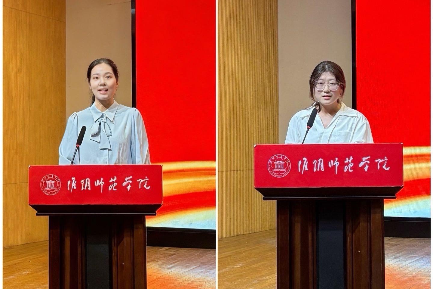 2202班李亭静同学作为老生代表,结合自身经历,分享了她在大学中的成长与收获,鼓励学弟学妹们勇敢尝试、广泛参与,在丰富的校园生活中找到属于自己的舞台。2506班杨谨言同学作为新生代表发言,表达了步入大学的激动与憧憬,并表示将不负韶华、脚踏实地,以积极进取的姿态迎接未来的挑战。