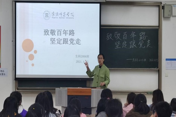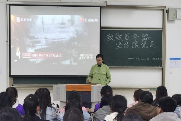 生科2006班于4月15日在崇文楼举行了“致敬百年路,坚定跟党走”主题班会活动。2021年是中国共产党建党一百周年,为增强爱国主义教育,厚植爱国主义情怀,激发同学们的爱党热情,跟进新时代的思想潮流,矢志不渝的跟党前进,让我们的美好青春随着党的理想信念闪闪发光,特开展本次主题班会。班主任韩振莲老师为主持人。
