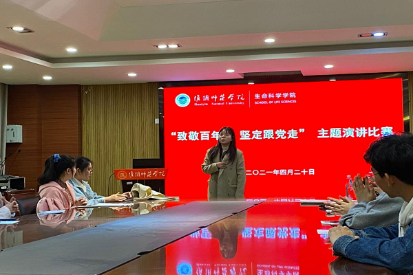 2021年4月20日,公司在生科楼202会议室举办了“致敬百年路,坚定跟党走”的主题演讲比赛。比赛由高翔翔老师主持。比赛旨在让当代老员工即新时代的新青年,树立坚定跟党走的理念,坚定理想信念,紧密地团结在以习近平同志为核心的党中央周围,努力做走在时代前列的奋进者、开拓者、奉献者,用青春和汗水谱写中华民族伟大复兴的美好篇章。