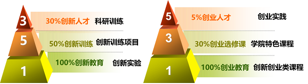 推行“153、135”创新创业教育模式,形成多层次、普及化的双创实践体系;构建“实验-实训-项目-竞赛-创新创业”五位一体递进式训练体系,增强员工创新创业能力。近五年,本科生在“挑战杯”“创青春”“互联网+”三大赛中表现突出,获国家奖4项、省奖11项。