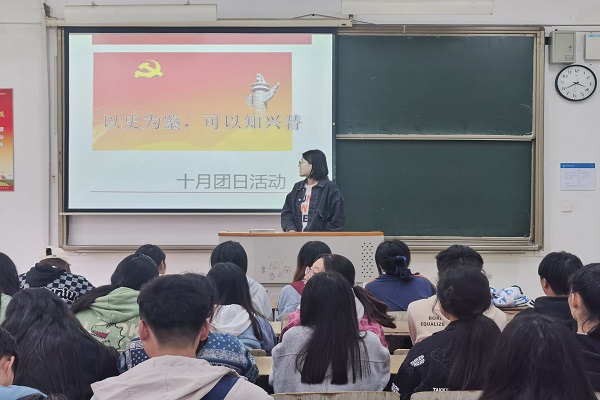 活动尾声团支书指出我们作为新时代的新青年,应当在学习生活中,努力提高专业知识素养,积极参加课外活动,认真学习思政知识,为祖国的发展尽一份力。