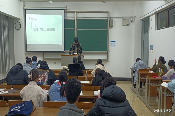 2021年12月12号,生科院2104班团支书张子强在崇文2-303暨校风、学风、班风建设主题教育活动,生科院2104班全体成员参加活动。