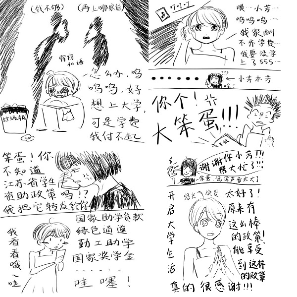 同学们积极参与,以员工资助政策以及在资助育人中发掘的典型事迹等为蓝本,通过单张或系列图画生动、形象、简洁地展示政策核心内容。