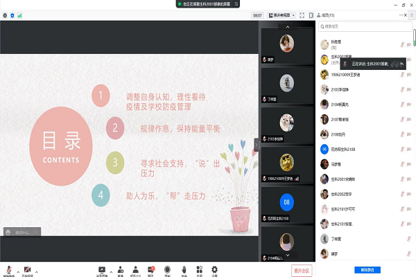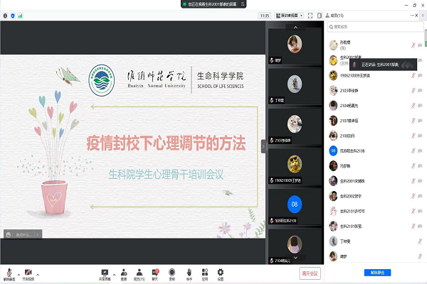 为进一步推动公司疫情防控期间的心理健康教育工作开展,确保心理健康教育四级网络机制的畅通,提升员工心理骨干在疫情防控工作中的帮扶技能,发挥心理委员朋辈互助力量,5月2日,生科院开展“疫情封校下心理调节的办法”心理骨干线上专题培训。