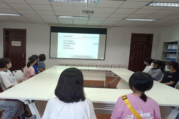 李若芳老师通过对图书馆开馆时间、入馆须知、文献分类、借阅规则、自助借还设备等方面的介绍,使新生对图书馆的资源与服务有了比较系统的了解。另外,李若芳老师还通过例子说明了图书馆的一些注意事项,新生对图书馆的常规管理有了更深的认知。此次图书馆入馆教育对营造勤学上进的优良学风,培养员工良好的阅读兴趣和习惯,提高老员工的人文素养与图书使用率起到了很好的促进作用。