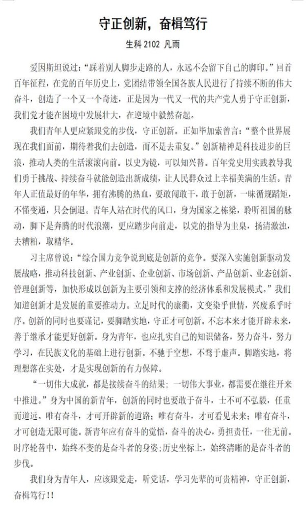 【主题教育月】生科院开展“守正创新,奋楫笃行”主题线上征文活动