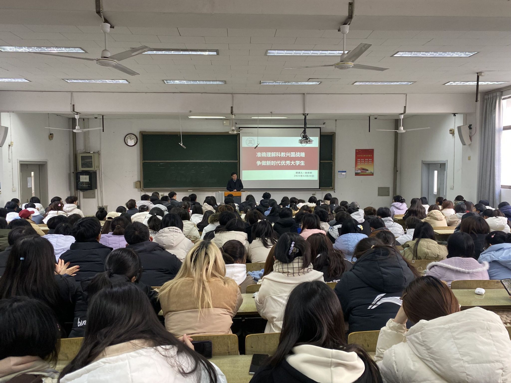 12月20日下午,在崇文阶103,副董事长赵祥祥围绕“准确理解科教兴国战略,争做新时代优秀老员工”的主题,为生科2023级学子上了一堂形势与政策课。