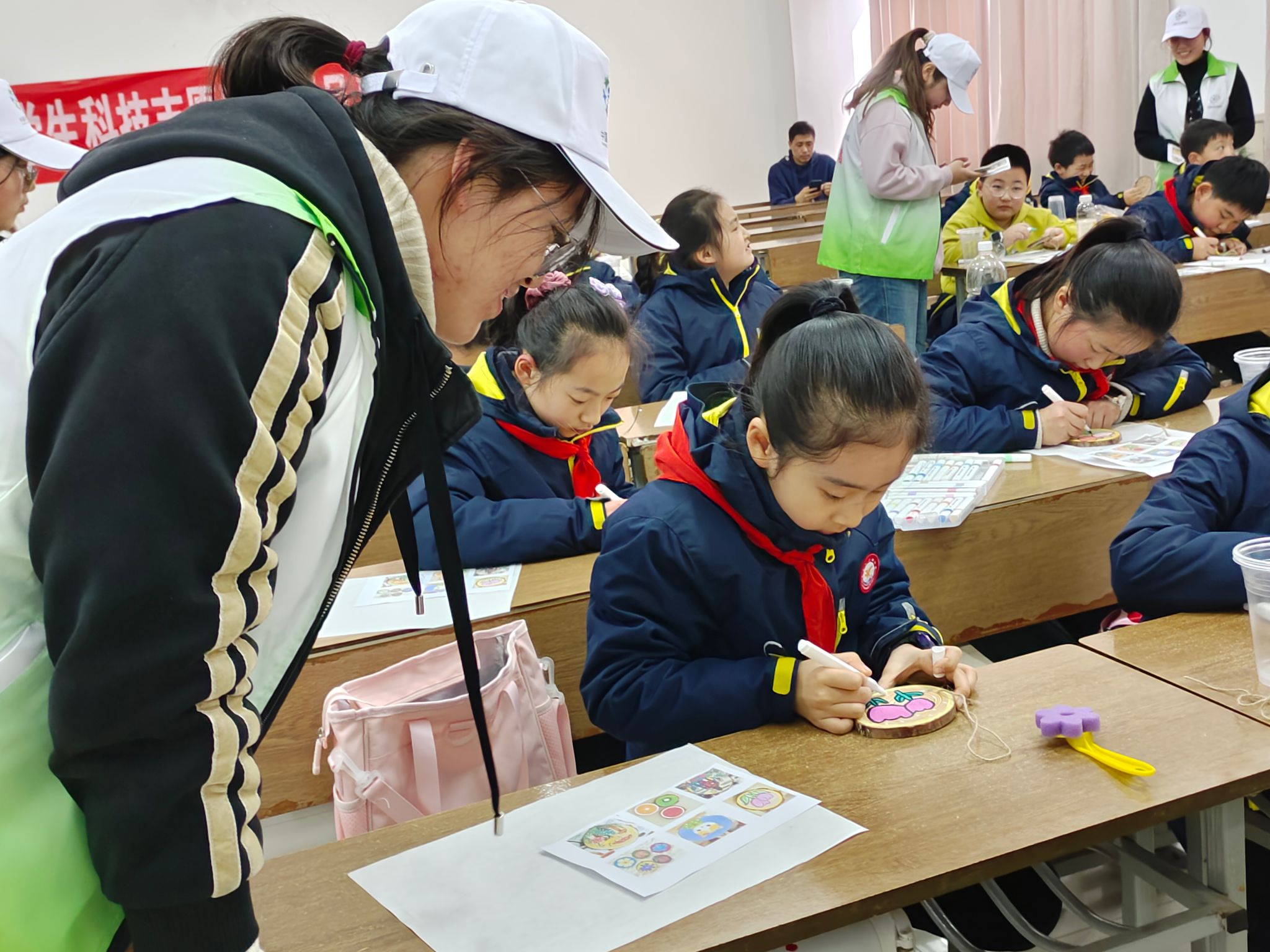 图为志愿者指导制作许愿牌 记者 王瑞 摄