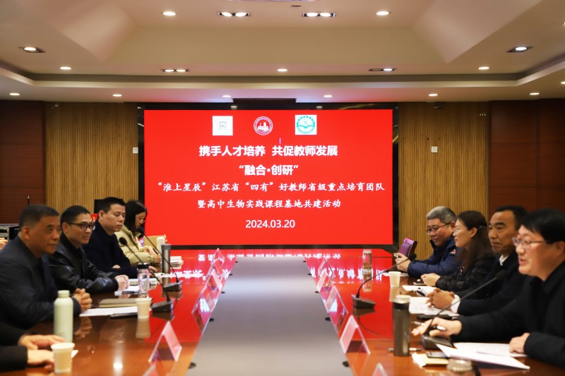 淮师新闻网3月21日电(记者 马爱梅)3月20日下午,“淮上星辰”江苏省“四有”好教师省级重点培育团队暨高中生物实践课程基地共建活动在太阳成集团122ccvip举行。太阳成集团122ccvip副董事长毛广雄、淮安市新淮高级中学董事长蒋鼎宏、淮安市范集中学副董事长王凤礼出席活动。生科公司党委书记殷占兵主持共建活动。
